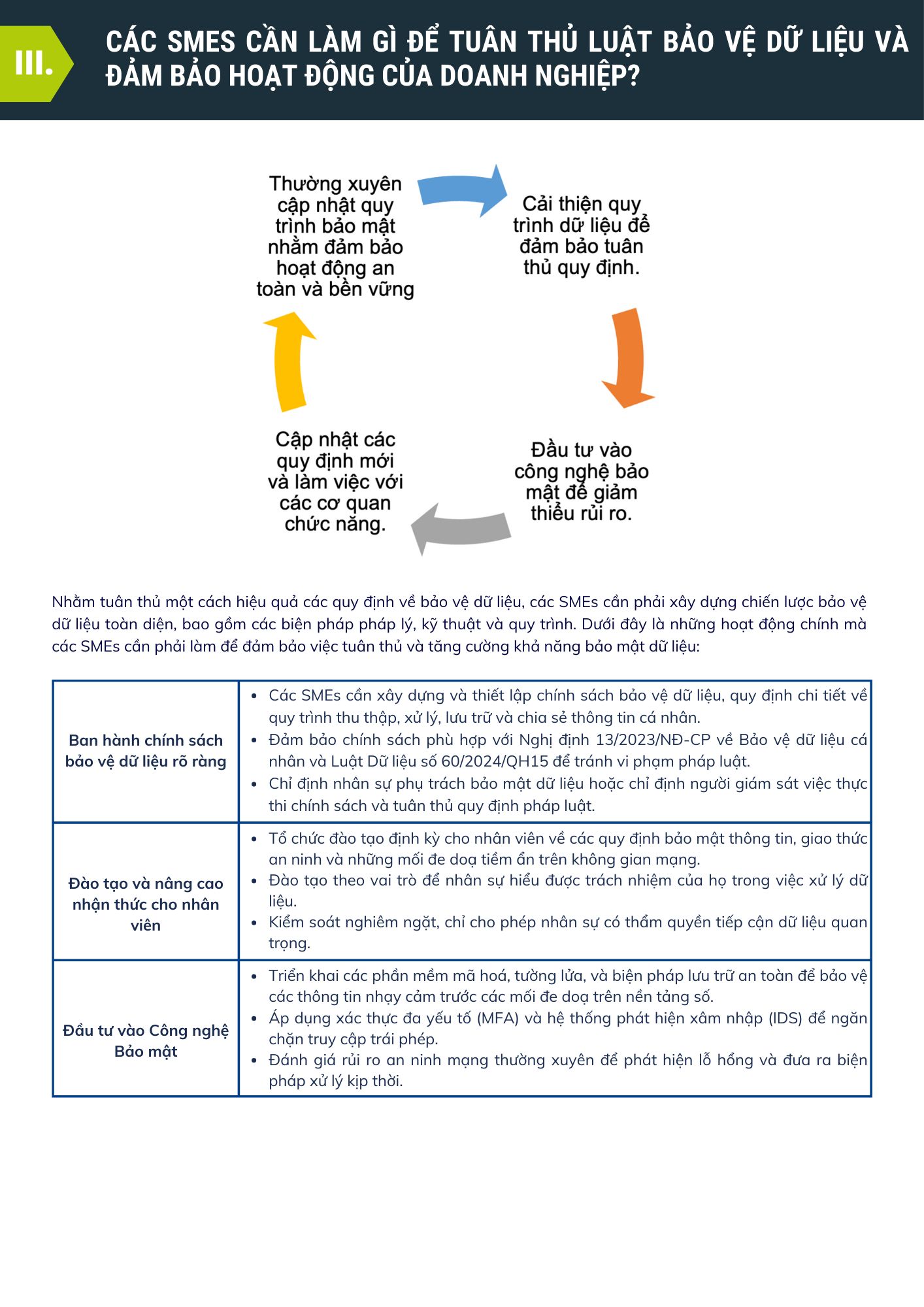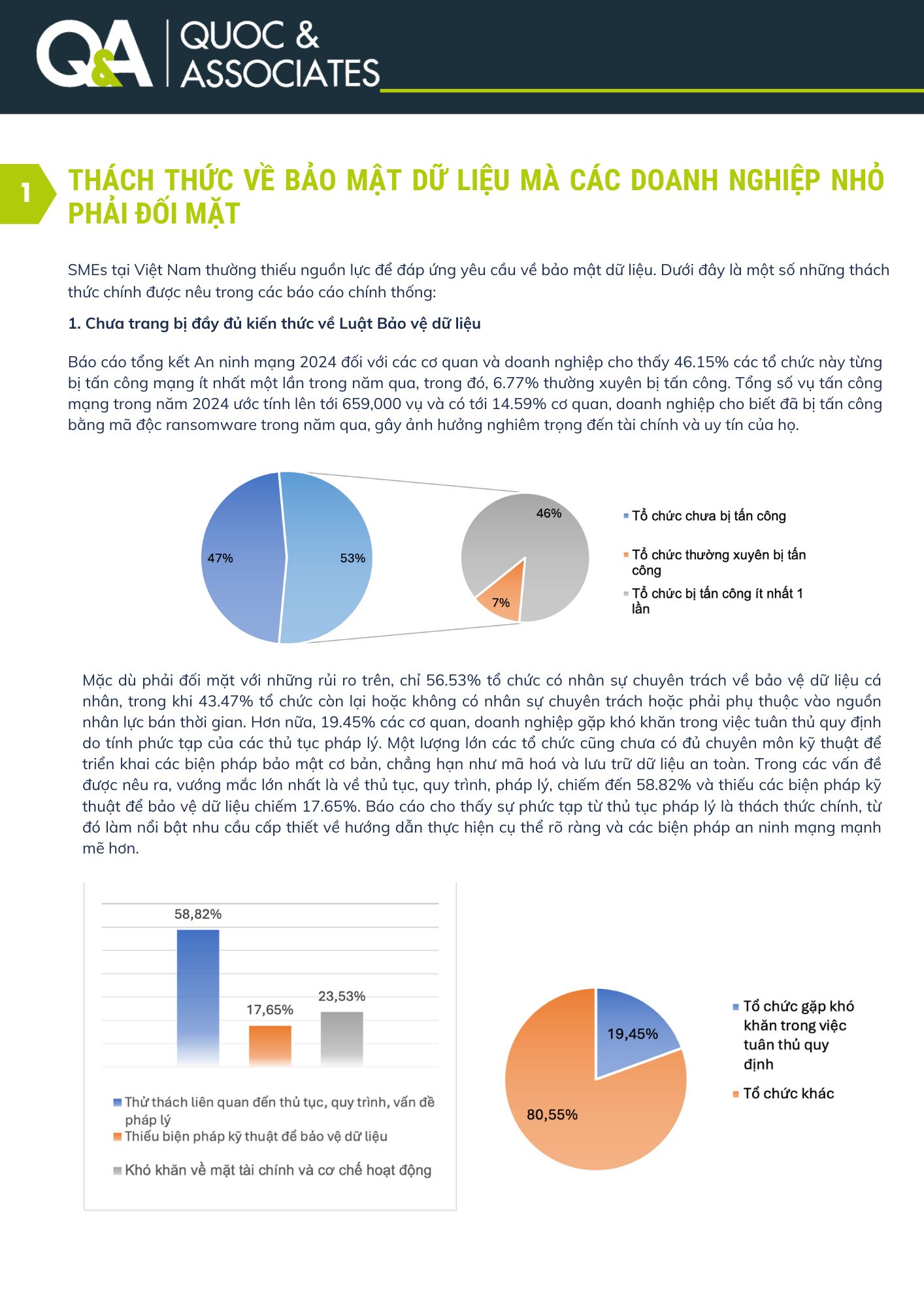 Báo cáo Tháng năm 2024 của Cục An toàn thông tin (AIS) thuộc Bộ Thông tin và Truyền thông (MIC) cho thấy hơn 70% các doanh nghiệp nhỏ và vừa có các biện pháp bảo vệ dữ liệu còn hạn chế, khiến họ dễ bị tấn công trực tiếp các mối đe dọa từ các cuộc tấn công mạng. Trong khi đó, việc tận dụng các công nghệ mới như 13/2023/NĐ-CP về Bảo vệ dữ liệu cá nhân và Luật Dữ liệu số 60/2024/QH15, Chính phủ Việt Nam đã thúc đẩy tăng cường việc tiếp cận bảo mật dữ liệu.